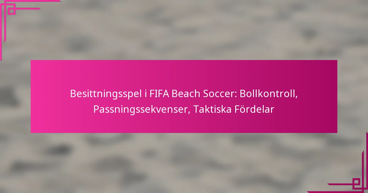 Besittningsspel i FIFA Beach Soccer ger flera taktiska fördelar, inklusive förbättrad bollkontroll, effektiva passningssekvenser och strategisk positionering. Dessa element bidrar till tidsförvaltning, motståndares trötthet och övergripande lagkoherens, vilket gör att lag kan utnyttja utrymme och störa defensiva formationer.